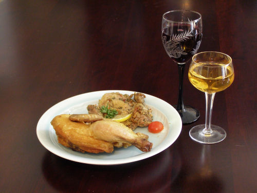 メインデッシュは塩振りの手羽先とバジルのステーキチキン。手羽先はボリュームがあるので2人で1本で十分です。軟骨まで食べられる方はぜひご堪能を。