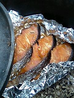 たまたま焼く予定だった鮭を半分頂いて燻製(くんせい)にしました。