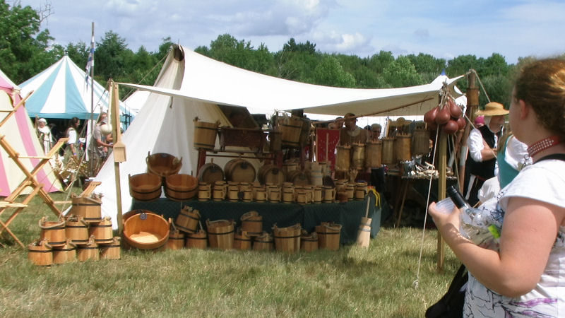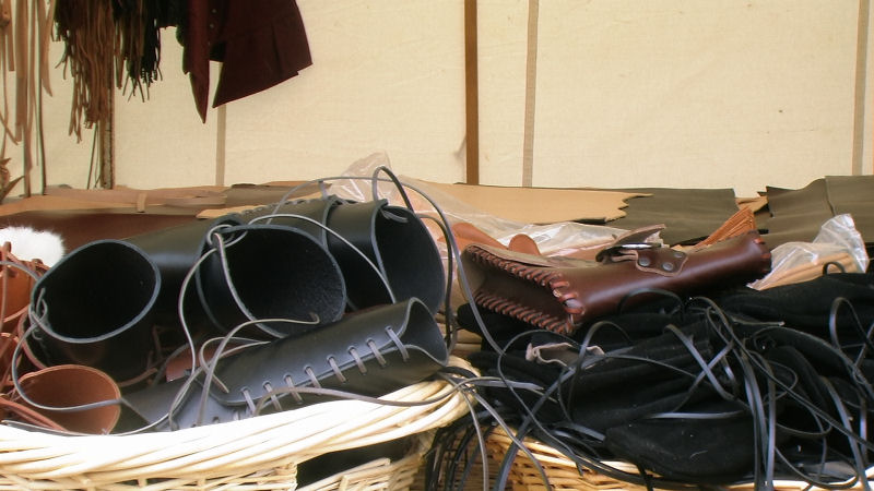マーケットでは、中世の時代からつかわれた小物や服がたくさん置かれていました。
